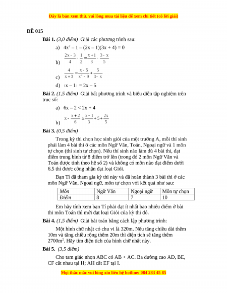 Đây là bản xem thử, vui lòng mua tài liệu để xem chi tiết (có lời giải)