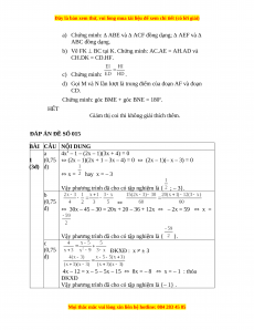 ĐÁP ÁN ĐỀ SỐ 015 BÀI CÂU NỘI DUNG a