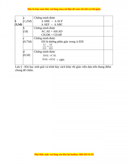 Lưu ý : Khi học sinh giải và trình bày cách khác thì giáo viên dựa trên thang điểm