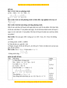ĐÁP ÁN ĐỀ SỐ 016 Bài Nội dung Điểm 1