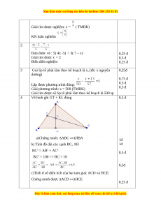 Giải phương trình: x = 500 (TMĐK) 0,5 đ