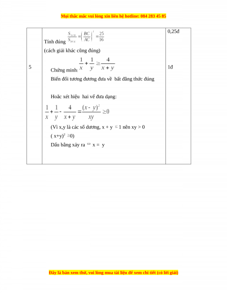 Bài 5 (1đ): Cho x > 0; y > 0 thoả mãn x + y 1 Chứng minh rằng :