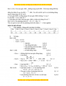 + Suy ra AC = 2AM = 4BE = …= 12 cm 0,5 đ 1 BC - Câuc: + Lập luận BK = 5 0,5 đ