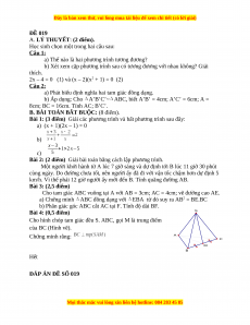 Bài 1: (3 điểm) Giải các phương trình và bất phương trình sau đây: a) (x + 1)(2x – 1) = 0