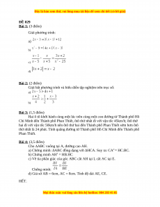 thứ nhất là 24 phút. Tính quãng đường từ Thành phố Hồ Chí Minh đến Thành phố Phan Thiết. Bài 4: (3,5 điểm)