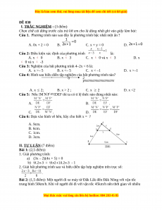 II. TỰ LUẬN (7 điểm) Bài 1: (2,5 điểm): 1. Giải phương trình: a) (3x – 2)(4x + 5) = 0