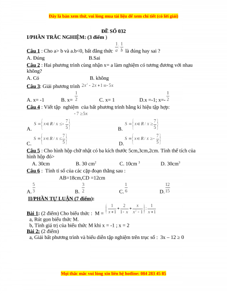 Đây là bản xem thử, vui lòng mua tài liệu để xem chi tiết (có lời giải)