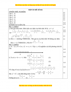a, Rút gọn biểu thức: Điều kiện xác định của biểu thức M là : x ≠ 1 0,25 0,25 M = = = = = = = 0,5