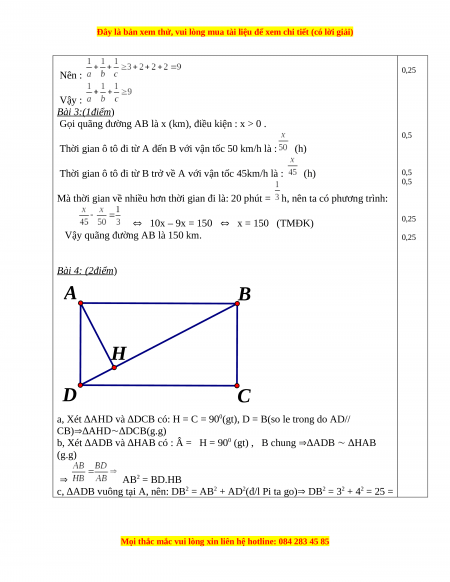 Vậy quãng đường AB là 150 km. 0,25 Bài 4: (2điểm) A B H D C