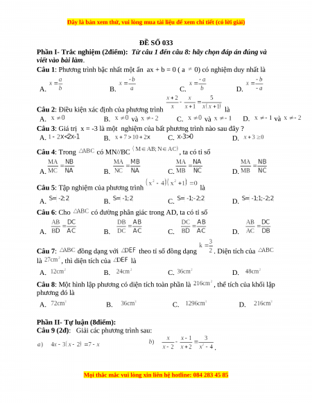 Đây là bản xem thử, vui lòng mua tài liệu để xem chi tiết (có lời giải)