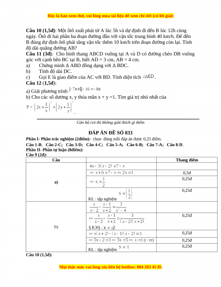 ĐÁP ÁN ĐỀ SÓ 033