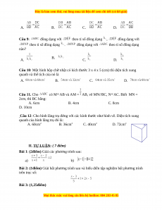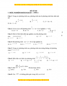 Câu 6: Điều kiện xác định của phương trình là A. B. và C. và D. và Câu 7: Biết . Độ dài đoạn AB là A. B. C. D. Câu 8: Cho