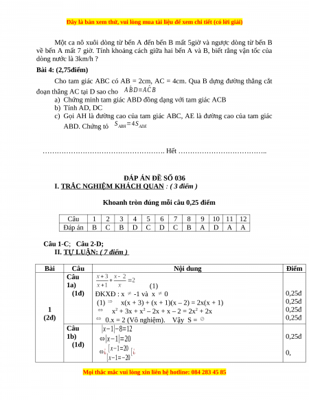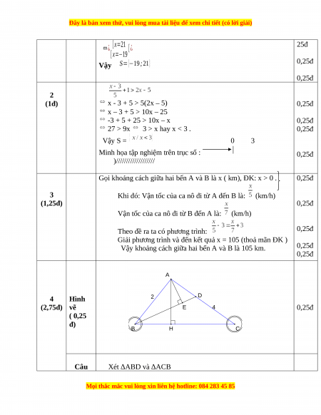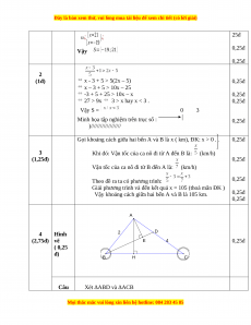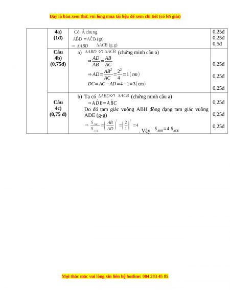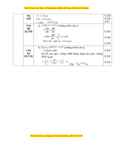Vậy khoảng cách giữa hai bến A và B là 105 km. 0,25đ 0,25đ A 4 Hình 2 D (2,75đ) vẽ E 4 0,25đ ( 0,25 đ) B H C Câu Xét ∆ABD và ∆ACB