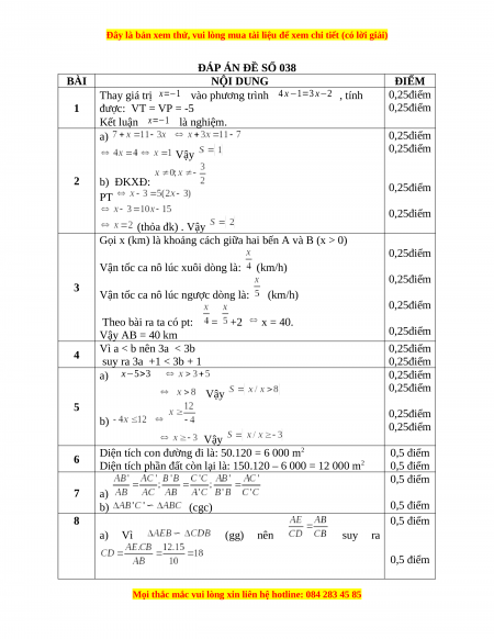 ĐÁP ÁN ĐỀ SỐ 038 BÀI NỘI DUNG ĐIỂM