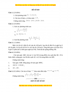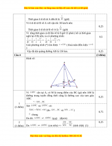 Khi đó pt đã cho trở thành: (thỏa mãn) 0,25 KL:… 0,25 Ta có: 2 0,25 (1 điểm) 0,25 KL:…. 0,25 (1,5 Câu 3 điểm) (1,5 điểm) Đổi: 30 phút giờ ; 9 giờ 15 phút giờ. 0,25