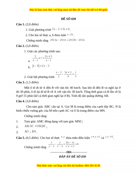 Đây là bản xem thử, vui lòng mua tài liệu để xem chi tiết (có lời giải)