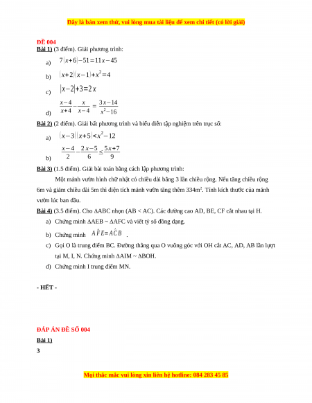 Đây là bản xem thử, vui lòng mua tài liệu để xem chi tiết (có lời giải)