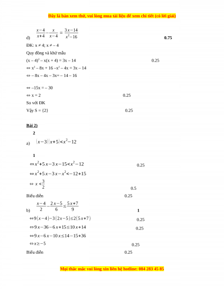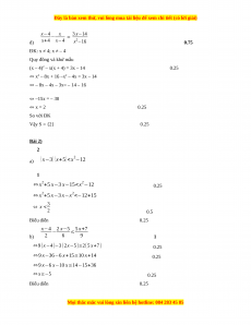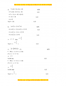 – 8x – 4x – 3x= – 14 – 16 –15x = – 30 x = 2 0.25 So với ĐK Vậy S = {2} 0.25 Bài 2) 2 a)
