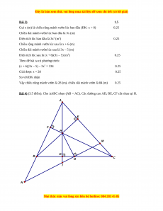Gọi x (m) là chiều rộng mảnh vườn lúc ban đầu (ĐK: x > 0) 0.25