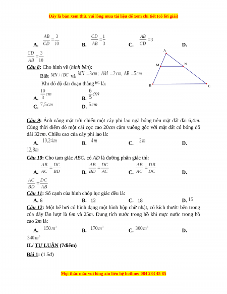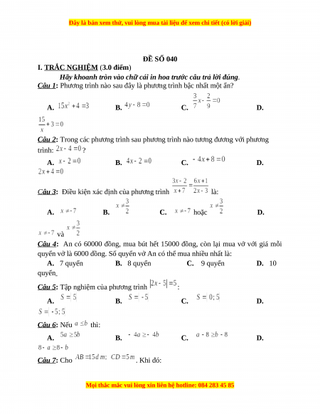 Đây là bản xem thử, vui lòng mua tài liệu để xem chi tiết (có lời giải)
