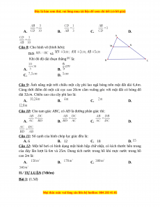 Câu 9: Ánh nắng mặt trời chiếu một cây phi lao ngã bóng trên mặt đất dài 6,4m.