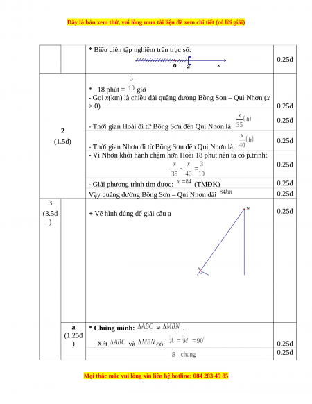 Vậy quãng đường Bồng Sơn – Qui Nhơn dài 0.25đ 3 N (3.5đ
