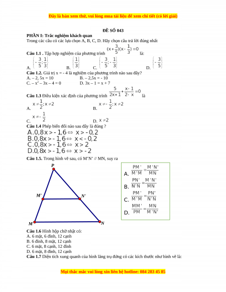 Đây là bản xem thử, vui lòng mua tài liệu để xem chi tiết (có lời giải)