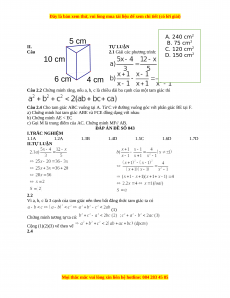 5 cm A. 240 cm2 B. 75 cm2 II. TỰ LUẬN C. 120 cm2 Câu