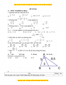 1. Phương trình bậc nhất một ẩn là: A. B. C. D. 2. Phương trình có tập nghiệm là: A. B. C. D.