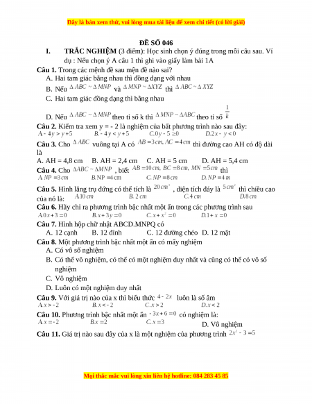 Đây là bản xem thử, vui lòng mua tài liệu để xem chi tiết (có lời giải)