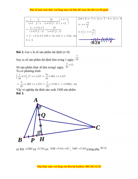 Vậy xí nghiệp dự định sản xuất 1500 sản phẩm Bài 3. A Q C B P H a) Xét và có: ; (cùng phụ