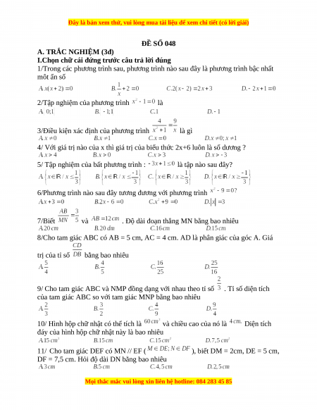 ĐỀ SỐ 048 A. TRẮC NGHIỆM (3đ)