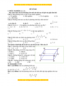 Câu 1: Một phương trình có thể có bao nhiêu nghiệm: a. Vô nghiệm b. Một nghiệm c. Vô số nghiệm d. Cả a, b, c đều đúng