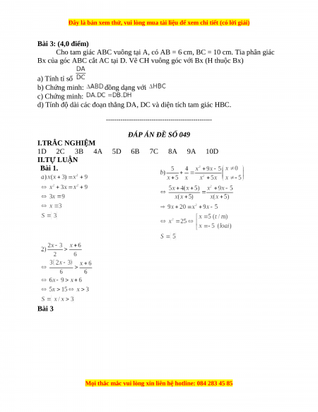 ĐÁP ÁN ĐỀ SỐ 049 I.TRẮC NGHIỆM 1D 2C 3B 4A 5D 6B 7C 8A 9A 10D II.TỰ LUẬN Bài 1. Bài 3