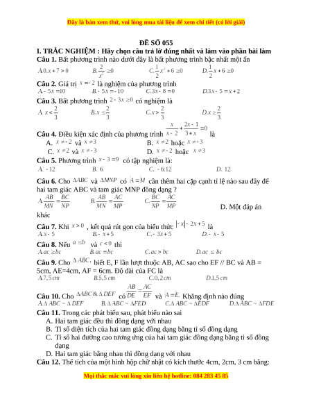 Đây là bản xem thử, vui lòng mua tài liệu để xem chi tiết (có lời giải)