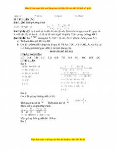 A với vận tốc 40 km/h. cả đi và về mất 4 giờ 30 phút. Tính quãng đường AB ? Bài 3 (3đ) Cho