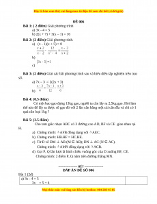 ĐÁP ÁN ĐỀ SỐ 006 Bài 1 (2đ) a) 3x - 4 = 5 3x = 5 + 4