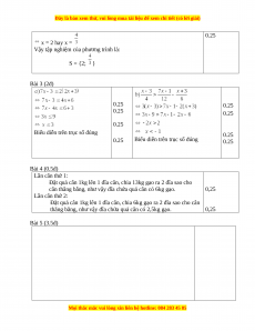 Vậy tập nghiệm của phương trình là: S = { } c) 3x – 5 = 1 hay 3x – 5 = -1 0.25 3x = 6 hay 3x = 4