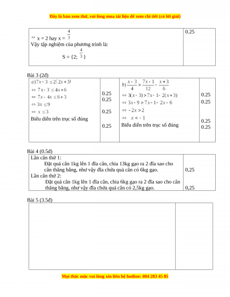 Biểu diễn trên trục số đúng 0.25 Bài 4 (0.5đ) Lần cân thứ 1: