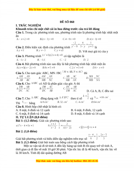 Đây là bản xem thử, vui lòng mua tài liệu để xem chi tiết (có lời giải)