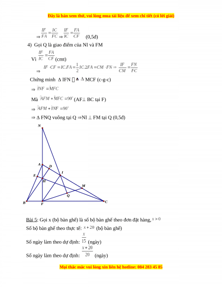 Bài 5: Gọi x (bộ bàn ghế) là số bộ bàn ghế theo đơn đặt hàng,