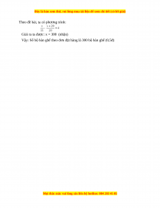 Vậy: Số bộ bàn ghế theo đơn đặt hàng là 300 bộ bàn ghế (0,5đ)