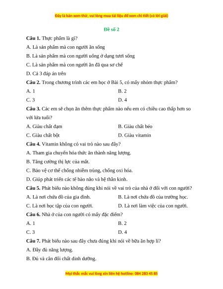 Câu 2. Trong chương trình các em học ở Bài 5, có mấy nhóm thực phẩm? A. 1 B. 2 C. 3 D. 4