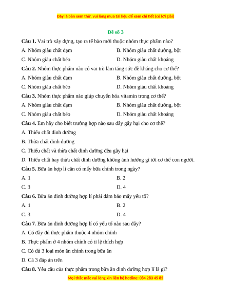 Câu 3. Nhóm thực phẩm nào giúp chuyển hóa vitamin trong cơ thể? A. Nhóm giàu chất đạm