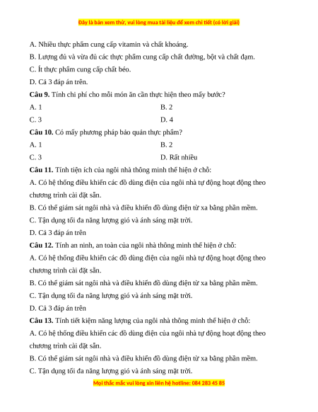 Câu 11. Tính tiện ích của ngôi nhà thông minh thể hiện ở chỗ: