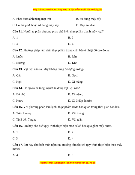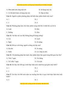 Câu 11. Người ta phân phương pháp chế biến thực phẩm thành mấy loại? A. 1 B. 2 C. 3 D. 4