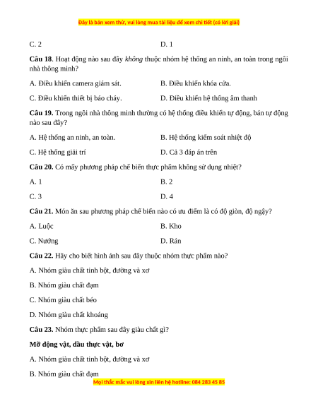 Câu 20. Có mấy phương pháp chế biến thực phẩm không sử dụng nhiệt? A. 1 B. 2 C. 3 D. 4