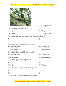 Câu 8. Cành giâm có khoảng mấy lá? A. 2 B. 4 C. 2 ÷ 4 D. Trên 4 lá
