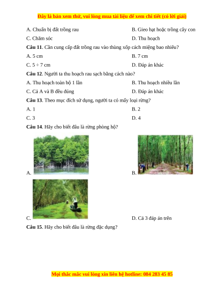 Câu 14. Hãy cho biết đâu là rừng phòng hộ? A. B. C. D. Cả 3 đáp án trên