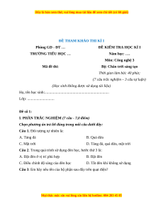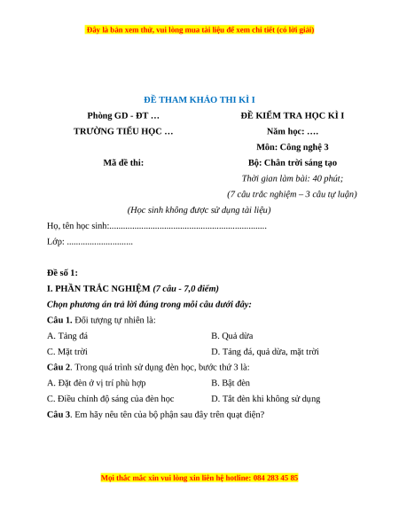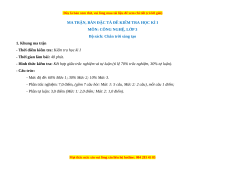 - Tailieugiaovien.com.vn giới thiệu 2 đề cuối kì 1 gồm đầy đủ ma trận và lời giải chi tiết môn Công nghệ lớp 3 Chân trời sáng tạo mới nhất nhằm giúp Giáo viên có thêm tài liệu tham khảo ra đề thi Công nghệ lớp 3.